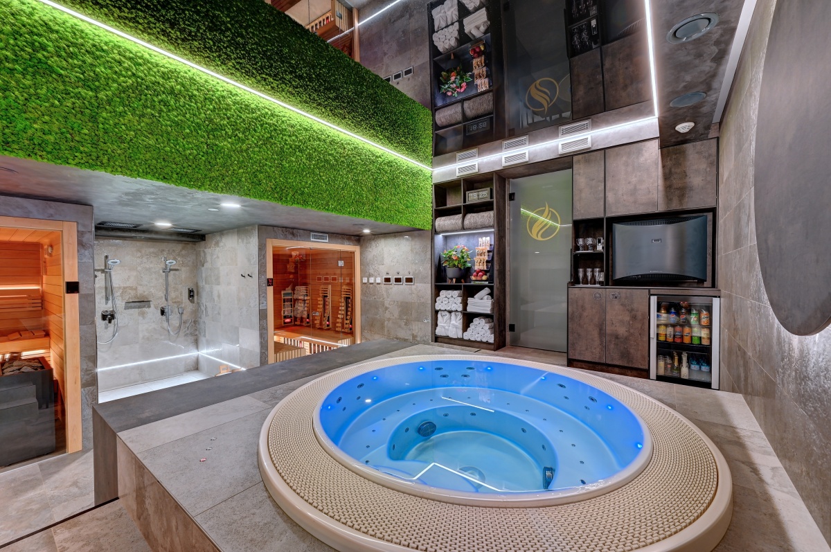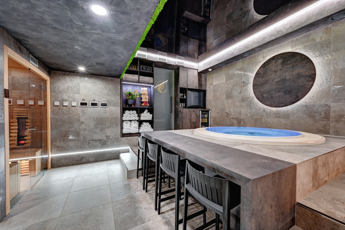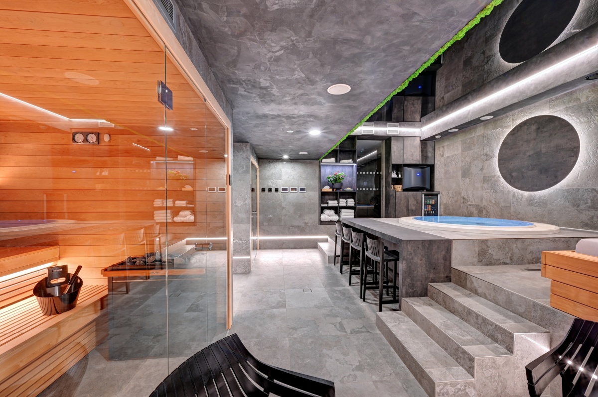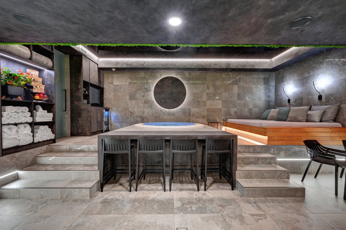 Samostatnou kapitolou je luxusní wellness zóna, kde jsme vytvořili prostředí podporující relaxaci a regeneraci. Použité materiály a zpracování odpovídají vysokým nárokům na odolnost a estetiku.