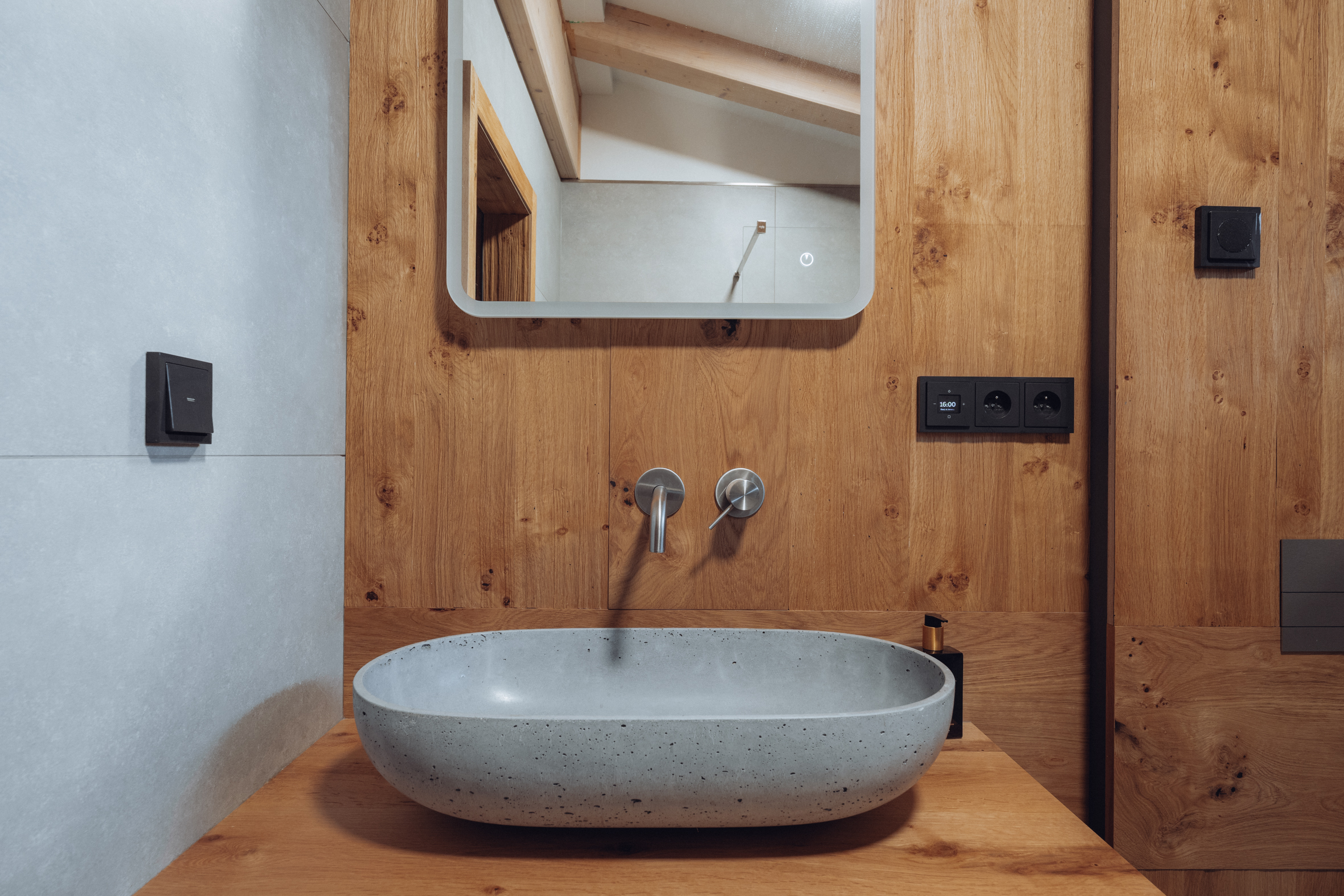 Důraz jsme kladli na precizní zpracování detailů, soulad použitých materiálů a nadčasové provedení.