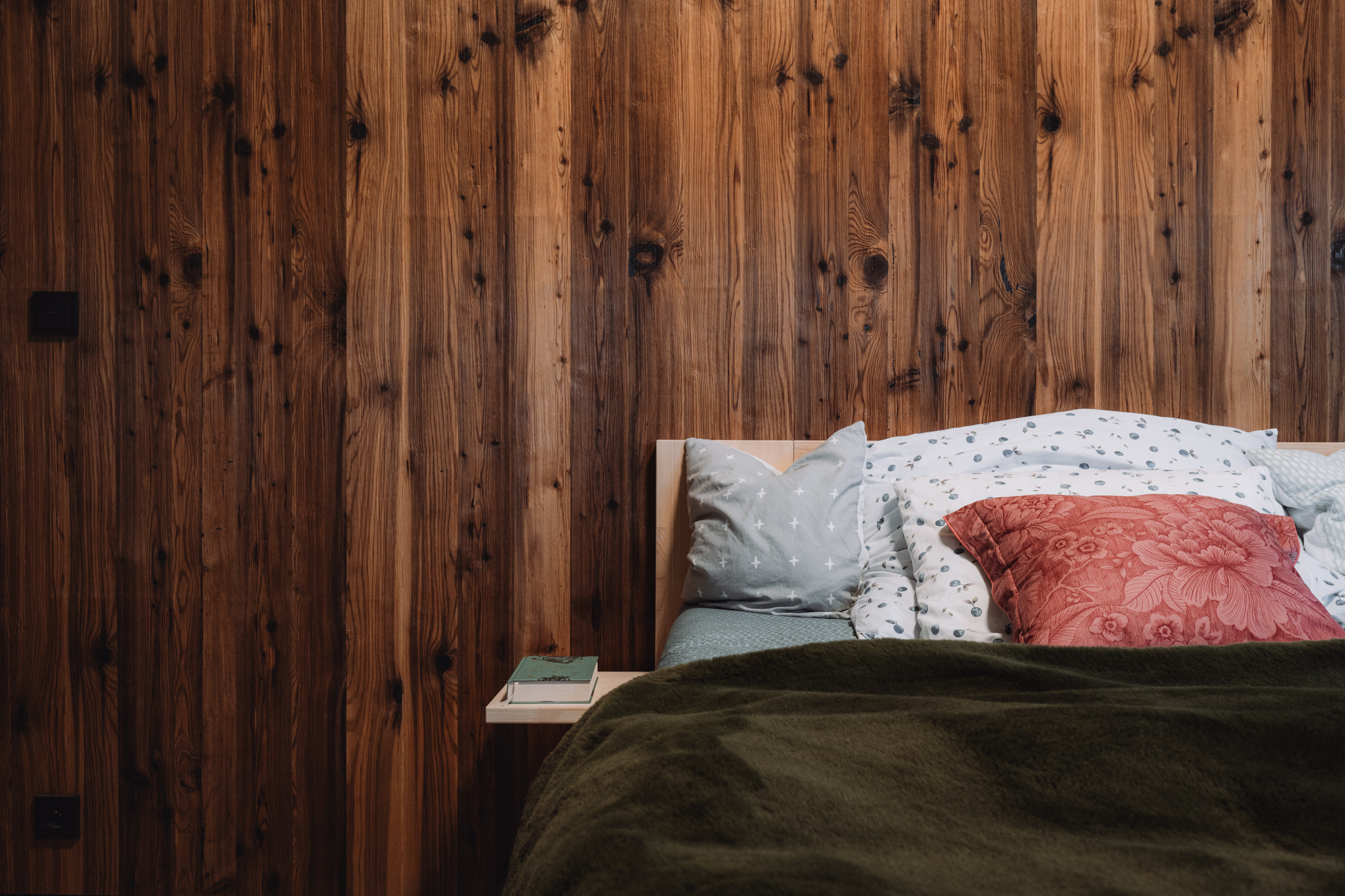 • obklady stěn v obývacím pokoji a ložnicích pro klidnou a harmonickou atmosféru,